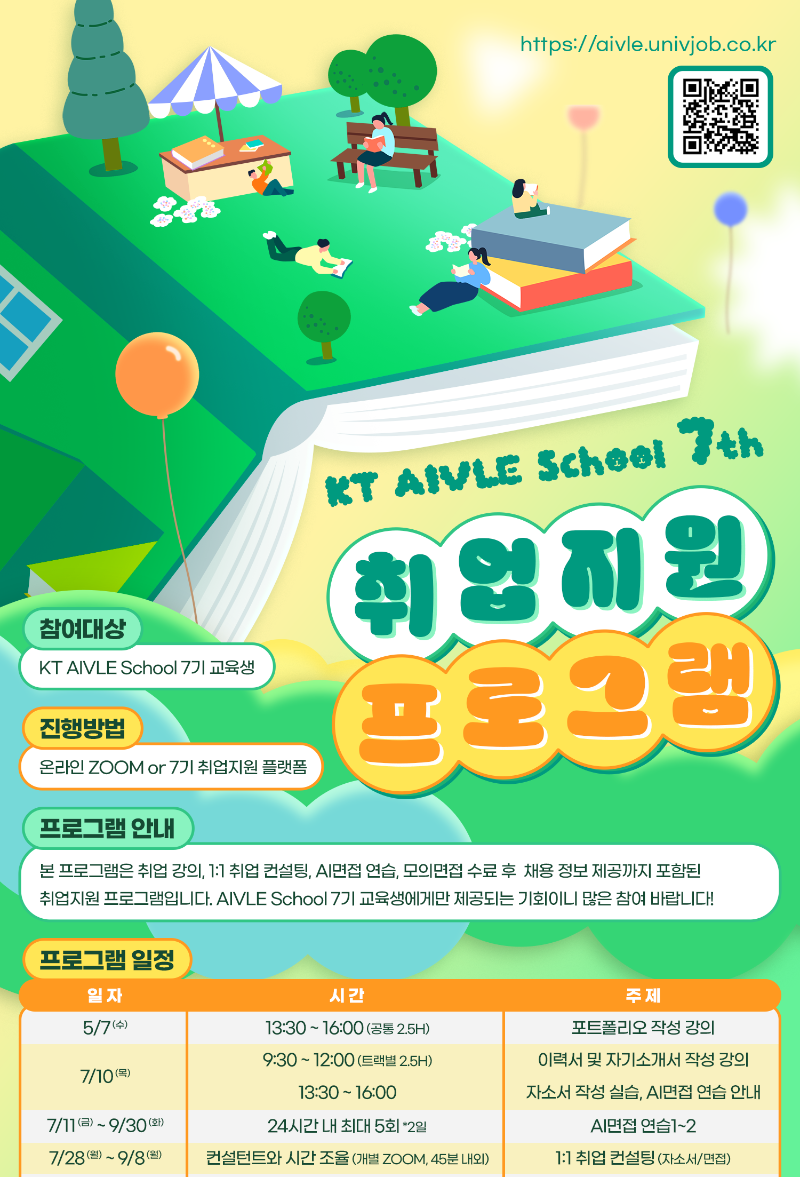 | 행사명 | KT AIVLE SCHOOL 7기 취업지원 프로그램 |